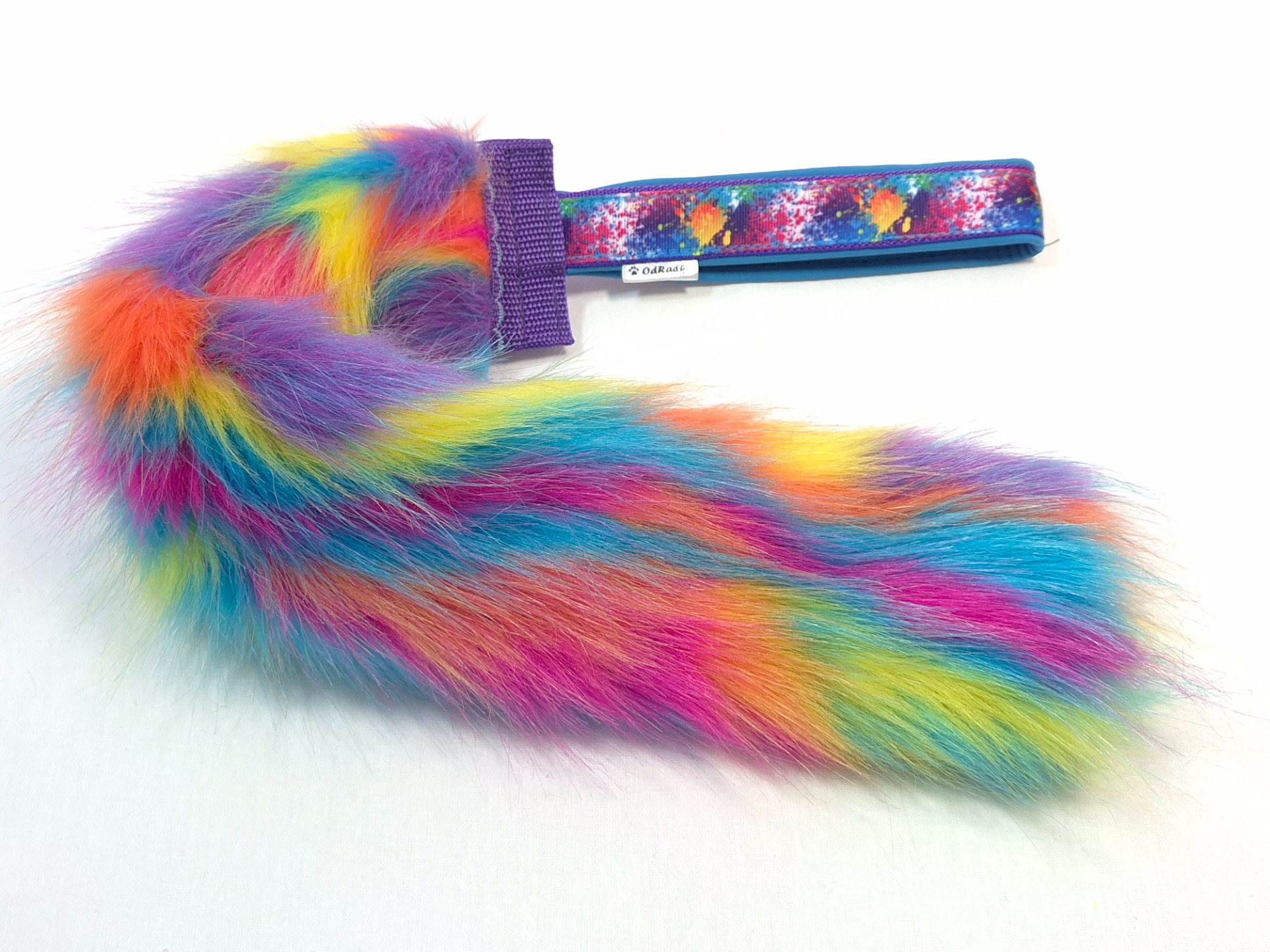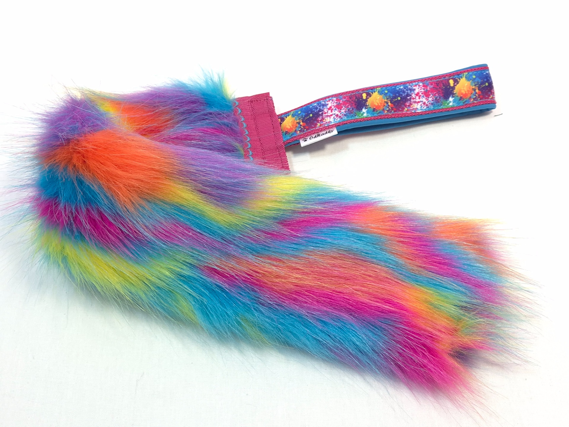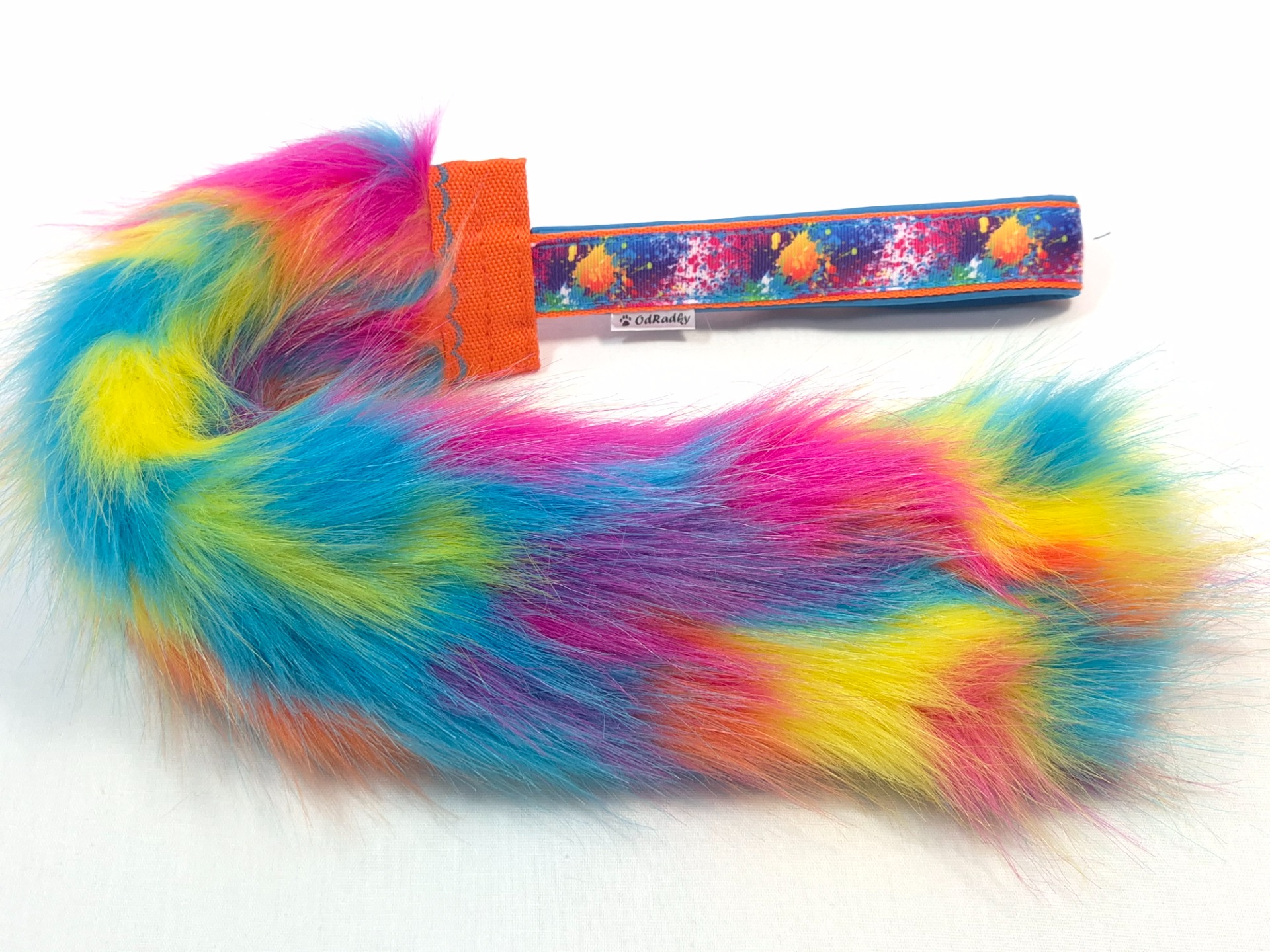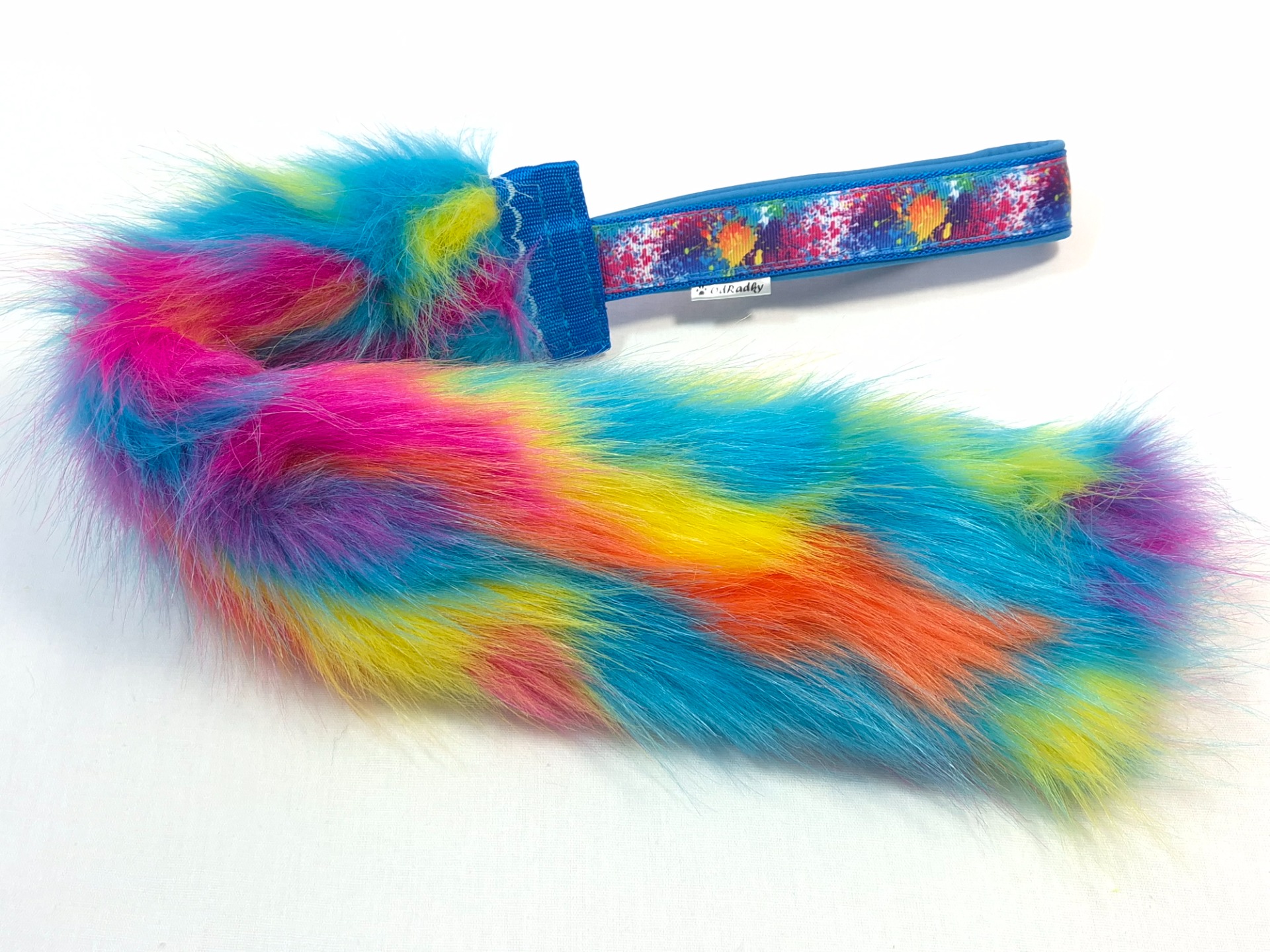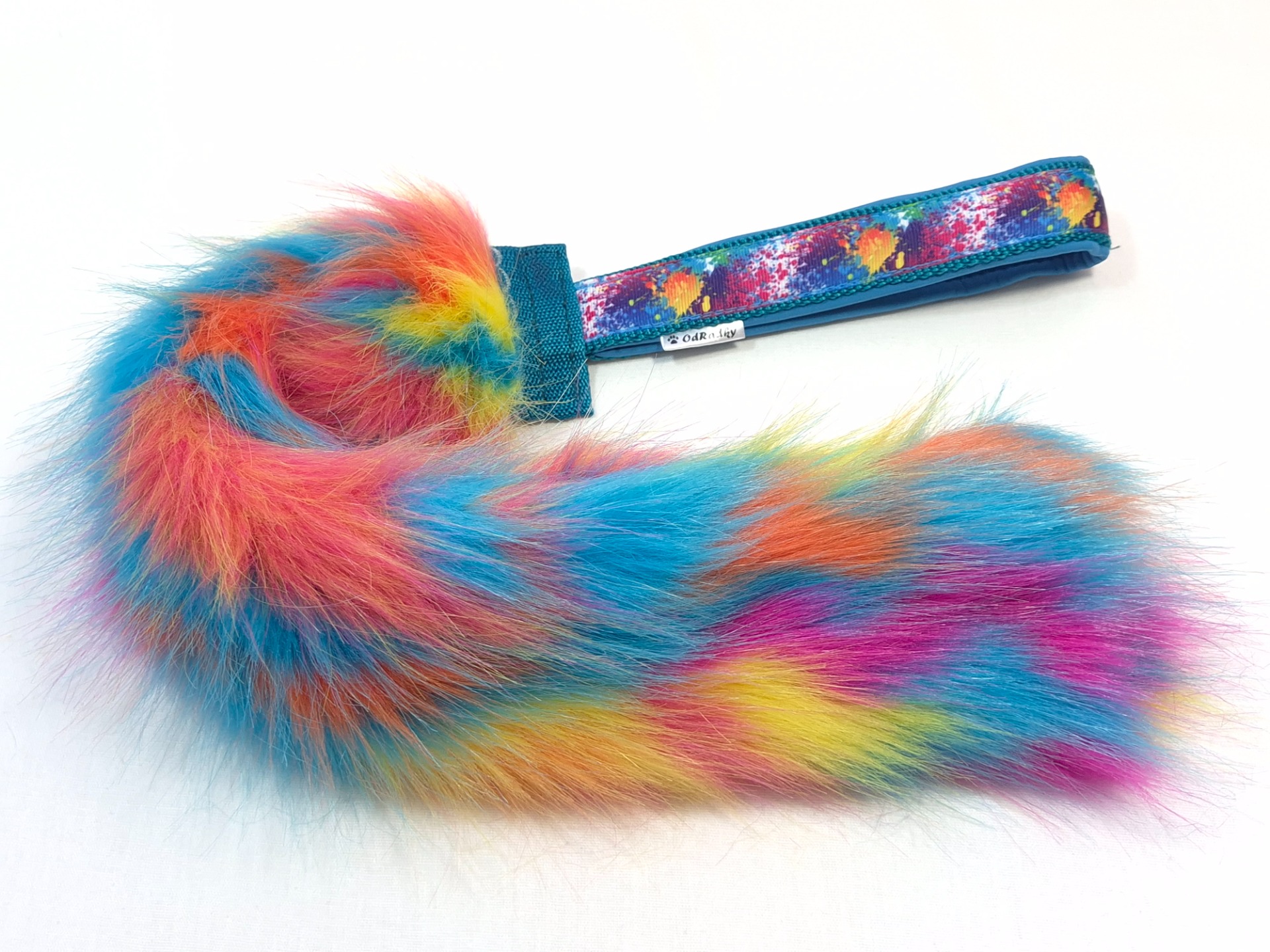 Vyrobeno z umělé kožešiny a popruhu s ručkou podšitou softshellem. Délka kožešinové části 40cm a šířka 8cm,  ručka 15cm. Celková délka hračky 55cm. Pro lepší pevnost vede popruh v celé délce kožešinové části.