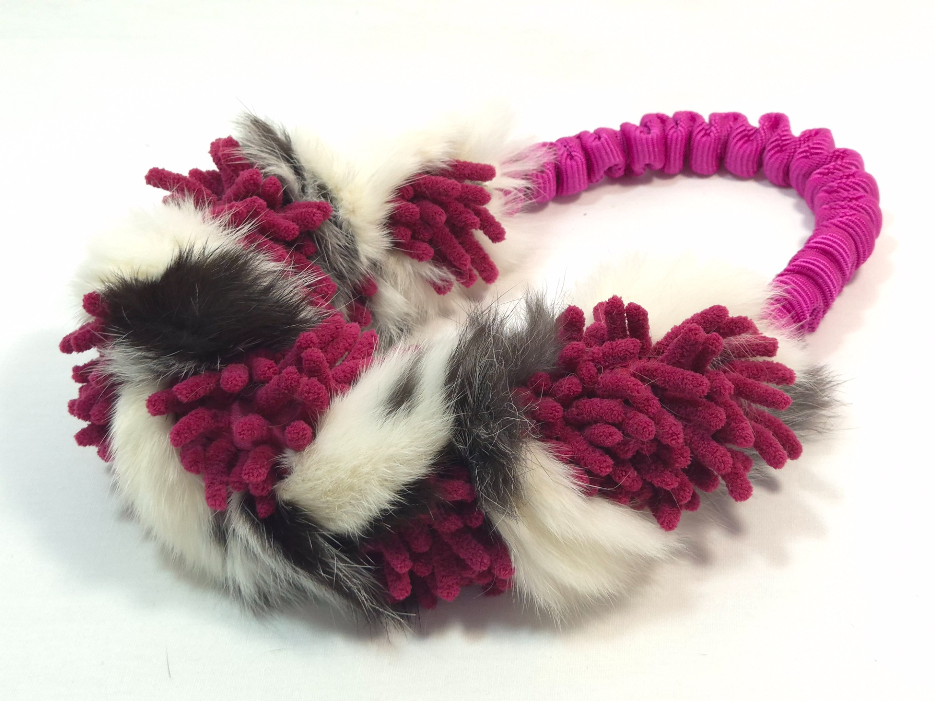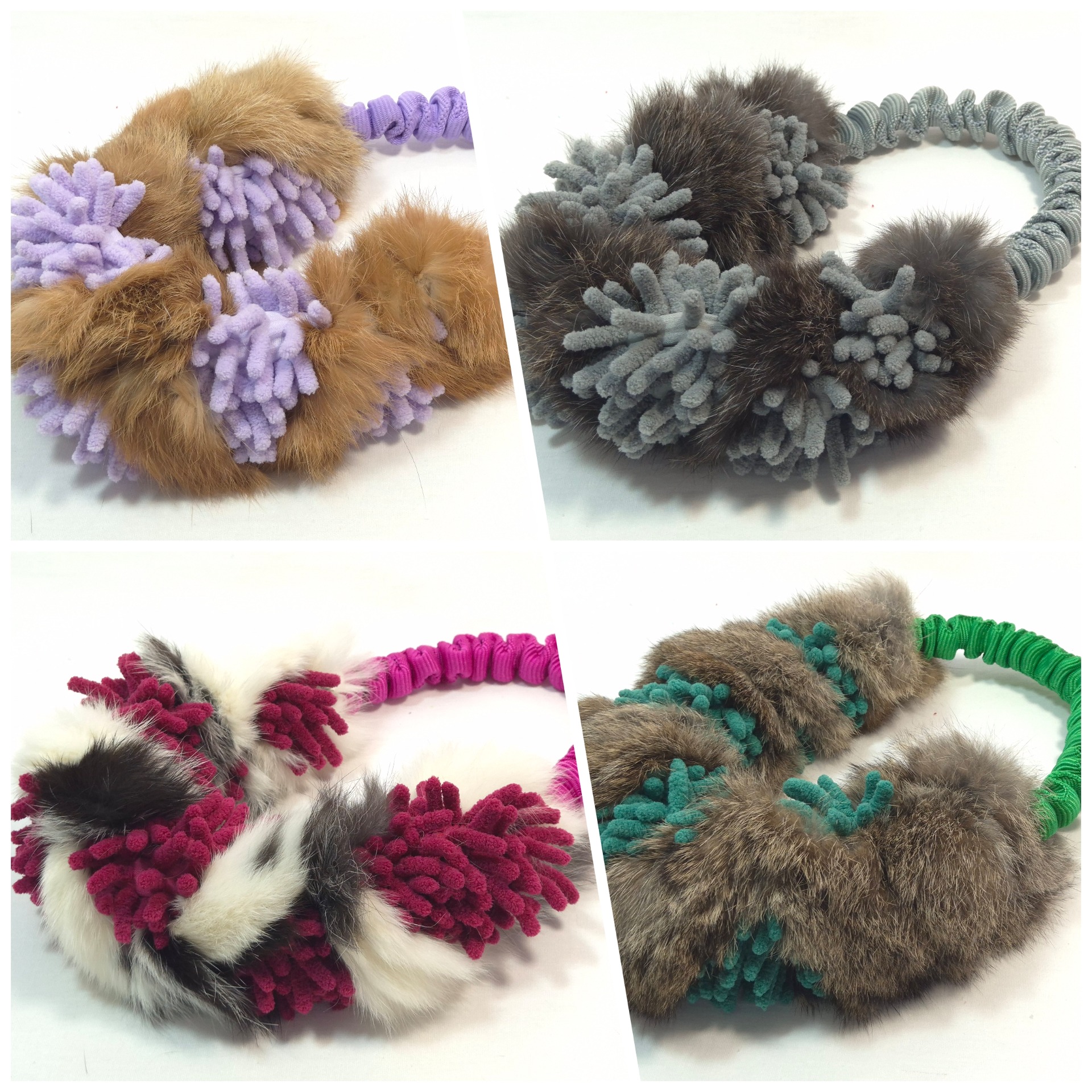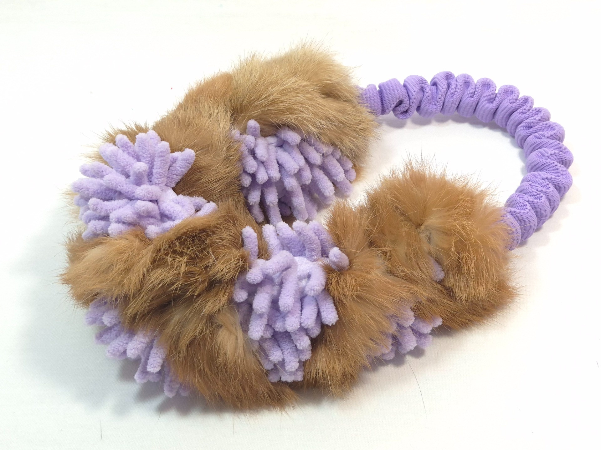Vyrobeno z pravé králičí kožešiny. Vnější průměr hračky 24cm, průměr mopové části s králičinou cca 4cm. Hračka jen pevná a vhodná pro psy větší plemen, je určena pro hru pod dozorem, nenechávejte s ní psa bez dozoru.