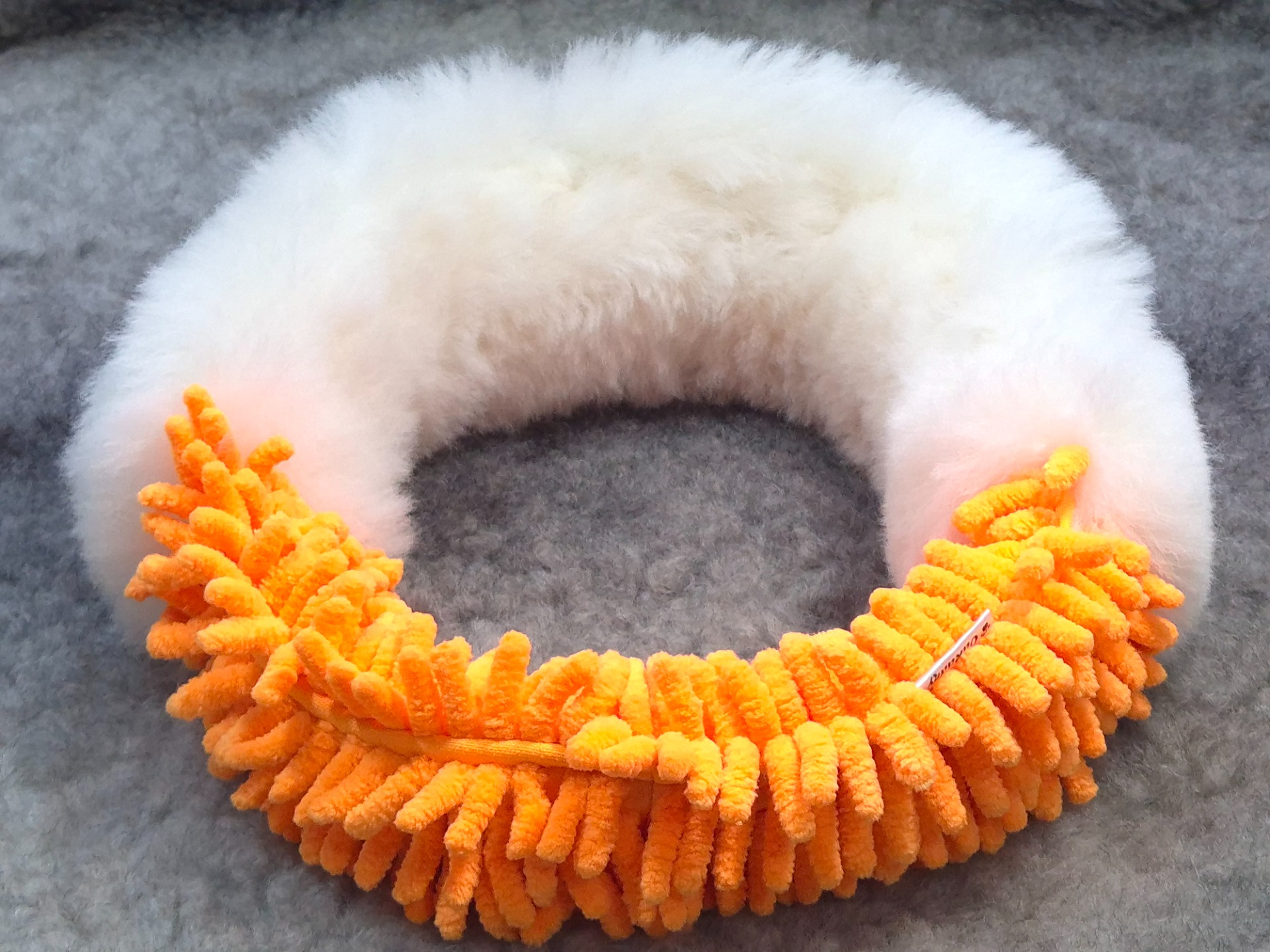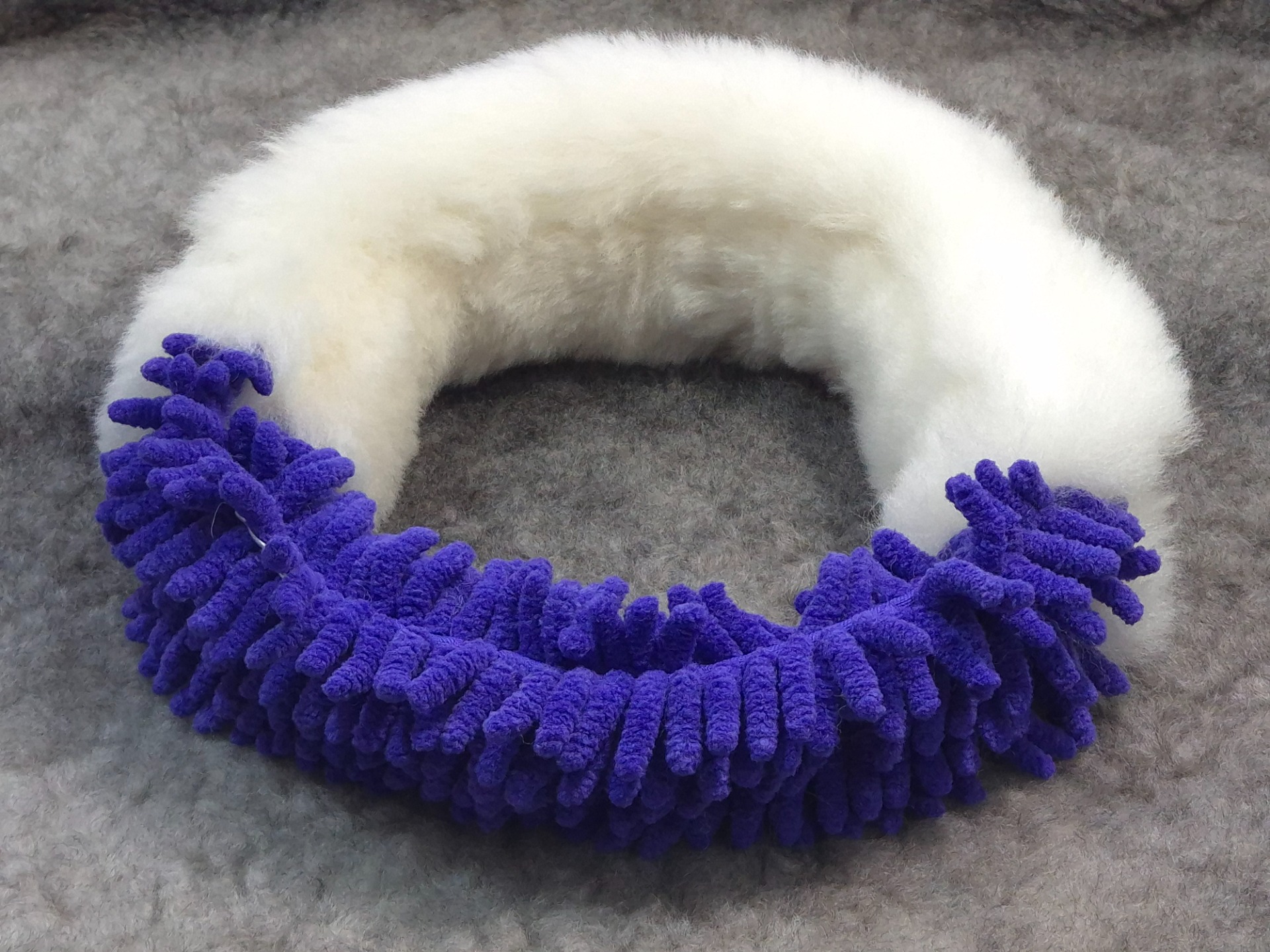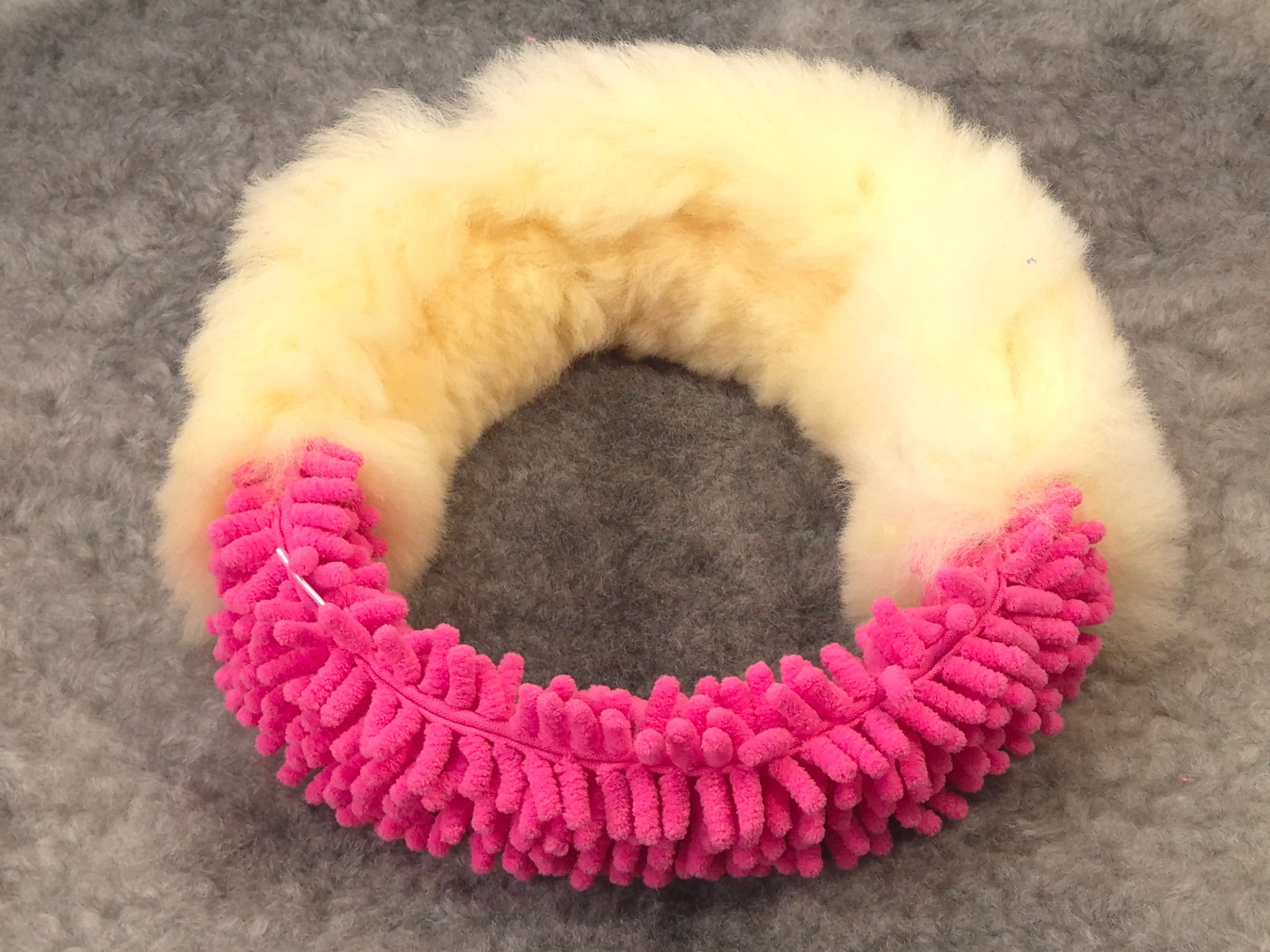 V celé délce kroužku vede popruh pro větší pevnost a odolnost. Kožešinová část 38cm. Celková velikost Ø 25cm.