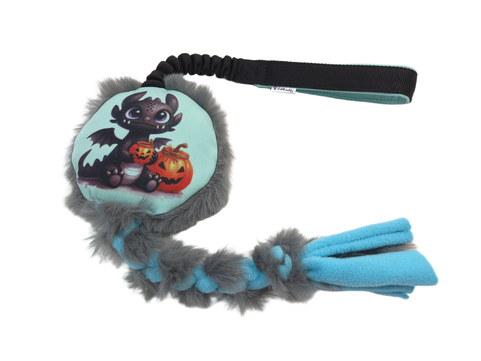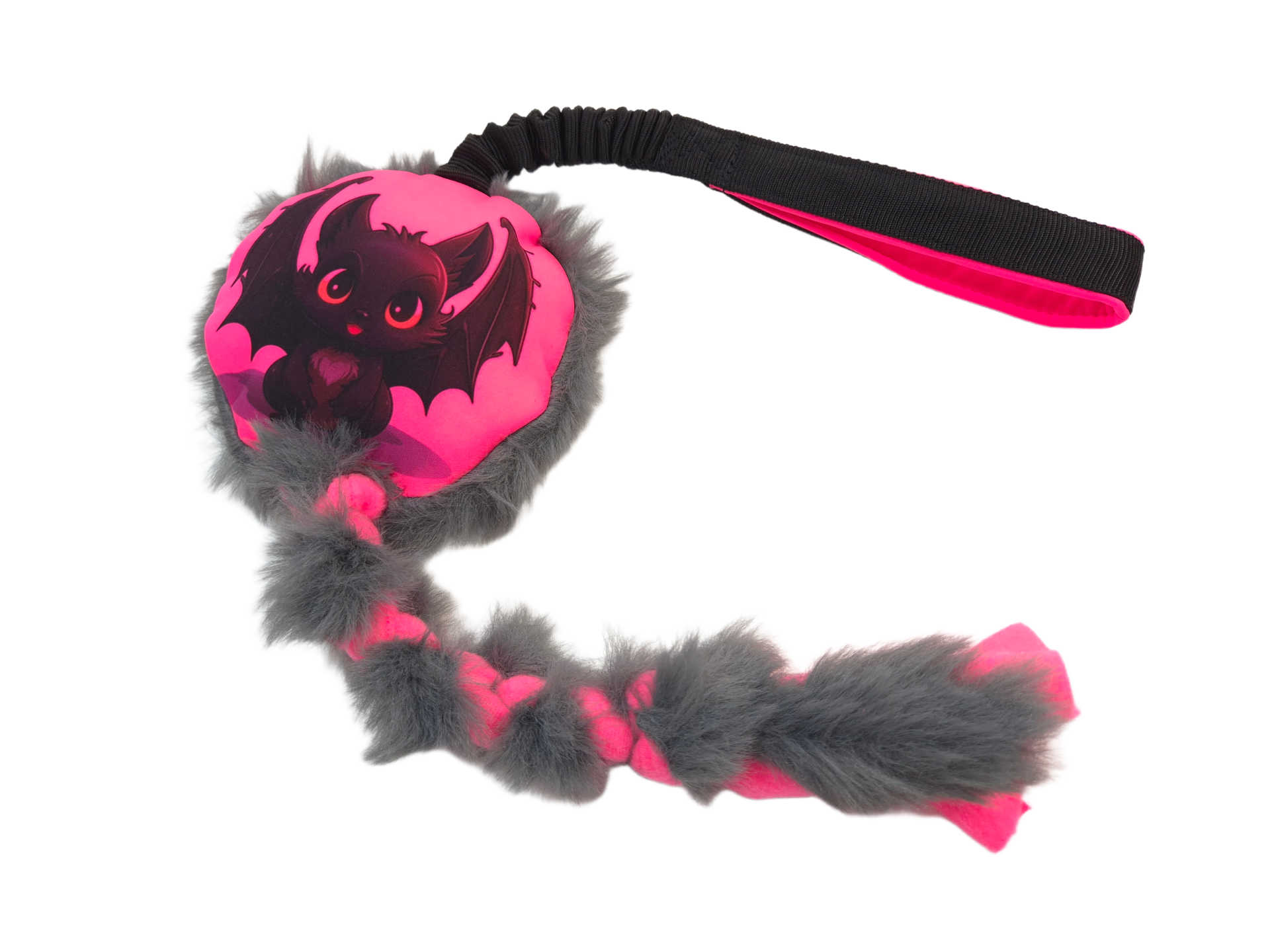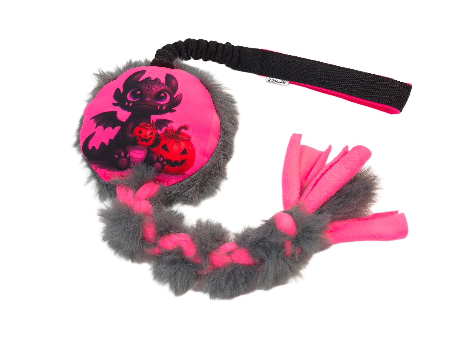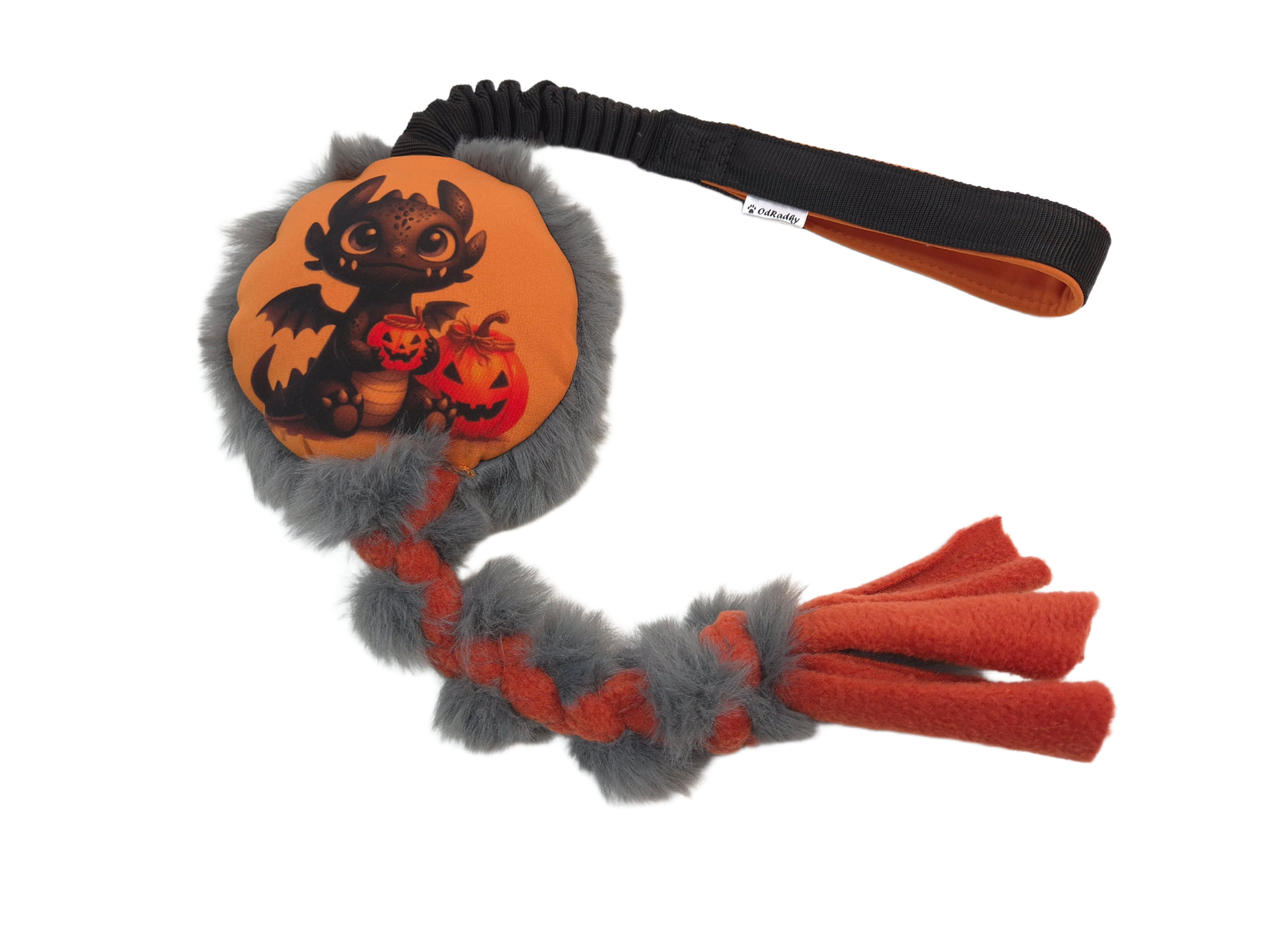 Přední strana softshel, zadní strana umělá kožešina, průměr okolo 14cm, cop z fleecu s umělou kožešinou o délce 25cm, pružná ručka ( amortizér) o délce 30 cm po natažení 50cm. Celková délka hračky okolo 65 cm.