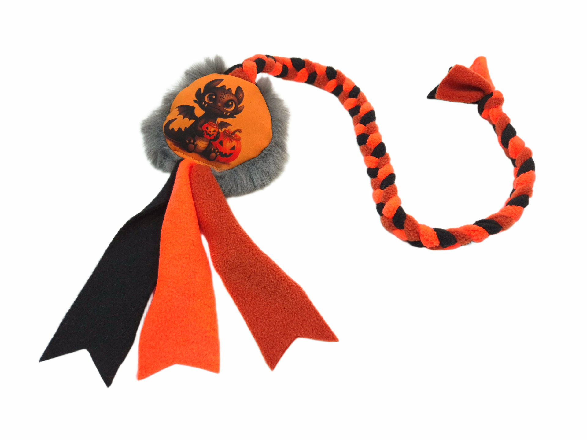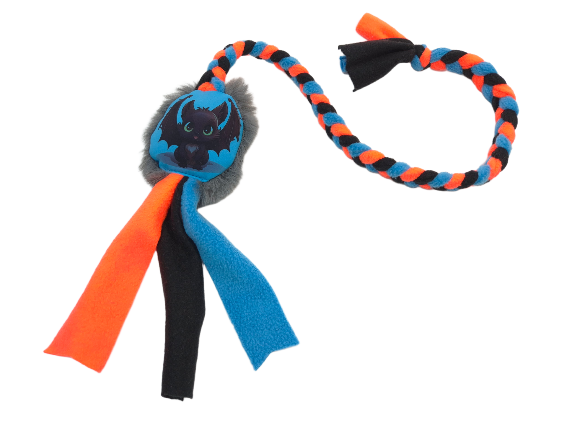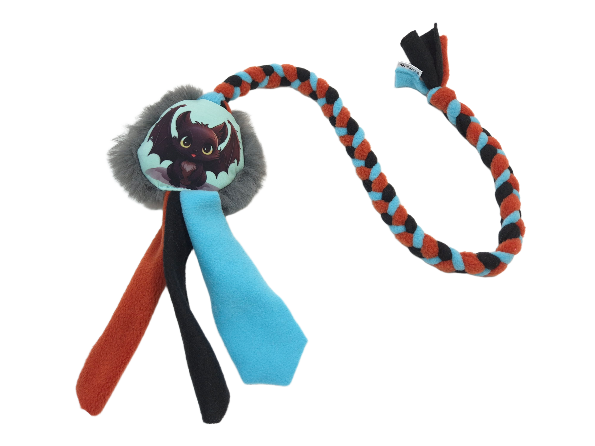 Přední strana softshel, zadní strana umělá kožešina, sřapec z fleecu. Průměr ksichtíku cca 10cm. Délka fleecového copu různá v rozmezí 60 - 70 cm. Délka fleecového střapce okolo 20cm. Celková délka hračky 90-100 cm.