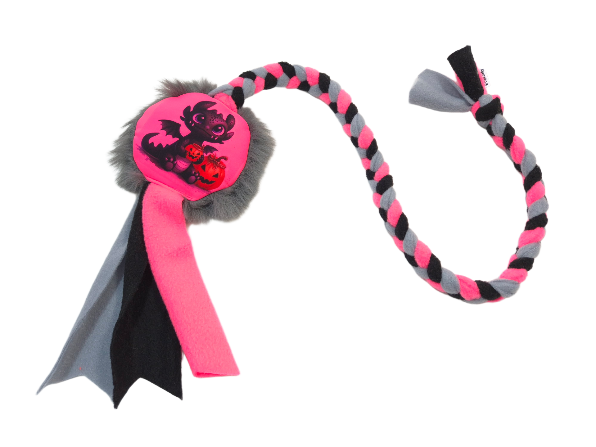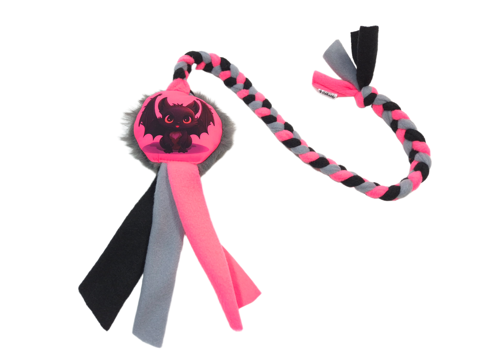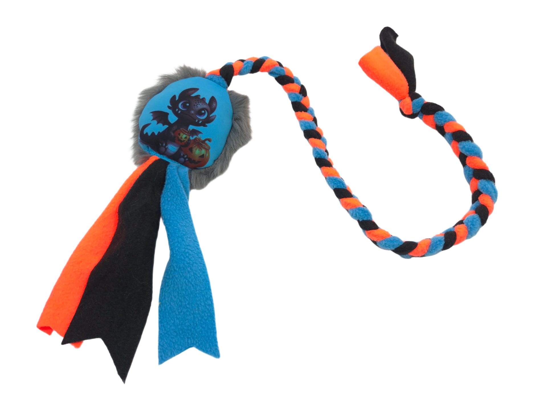 Přední strana softshel, zadní strana umělá kožešina, sřapec z fleecu. Průměr ksichtíku cca 10cm. Délka fleecového copu různá v rozmezí 60 - 70 cm. Délka fleecového střapce okolo 20cm. Celková délka hračky 90-100 cm.