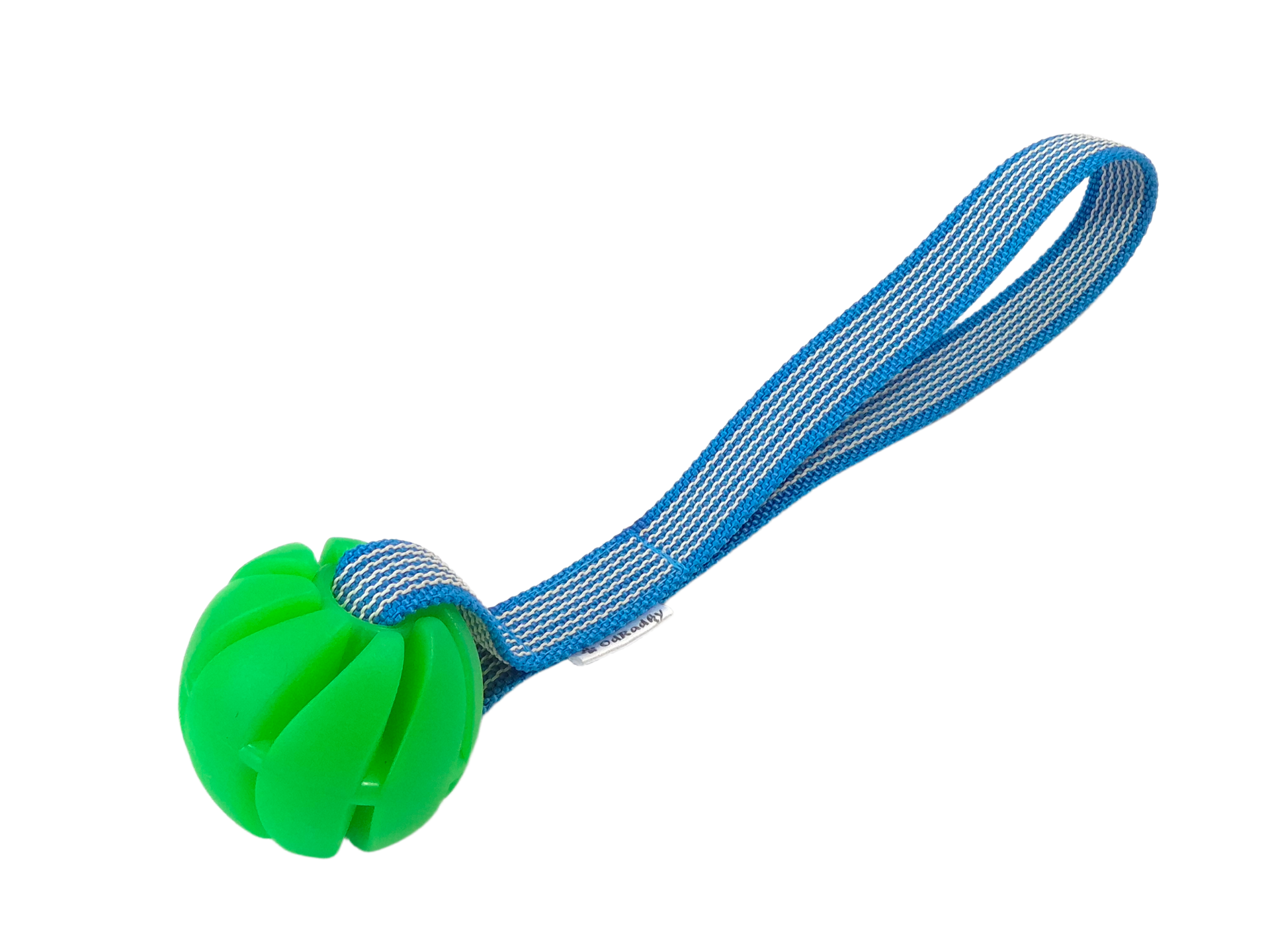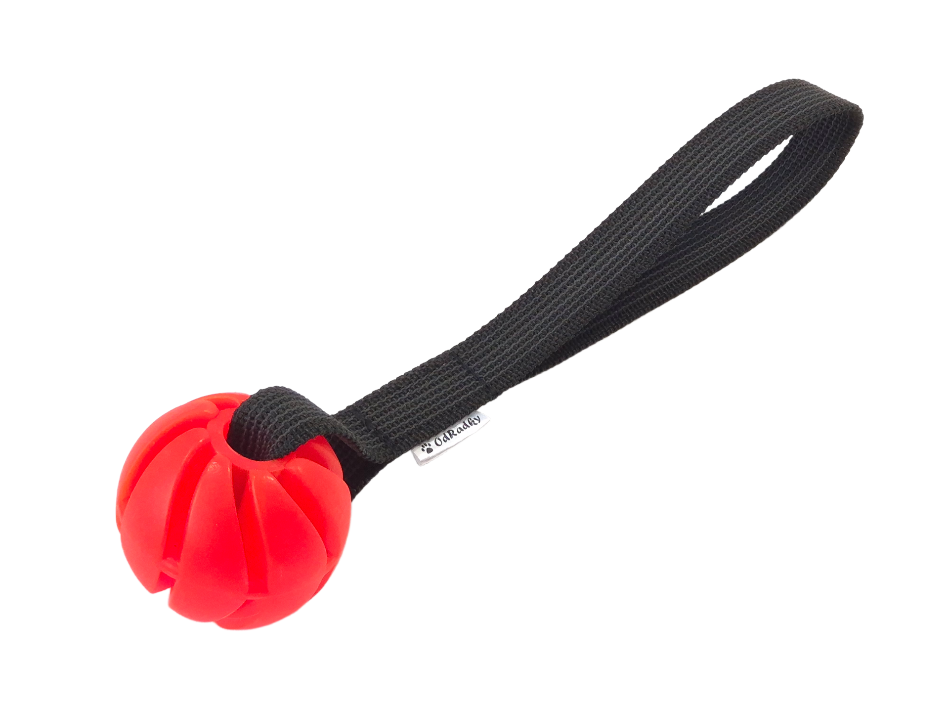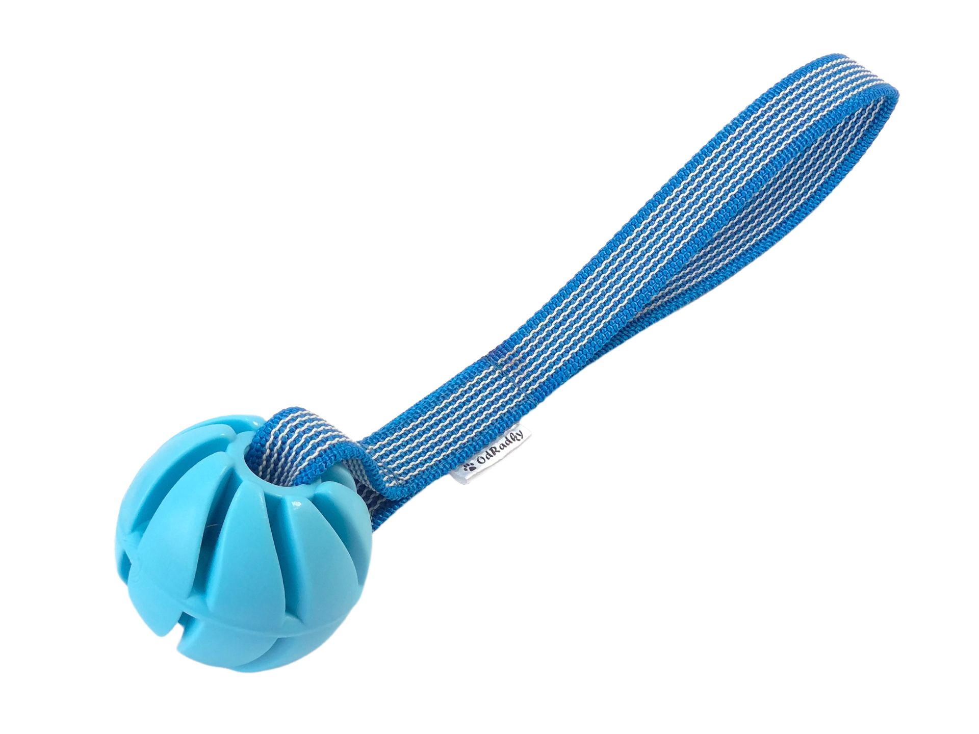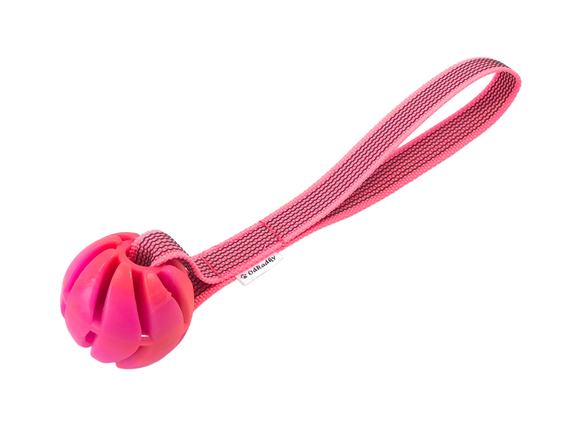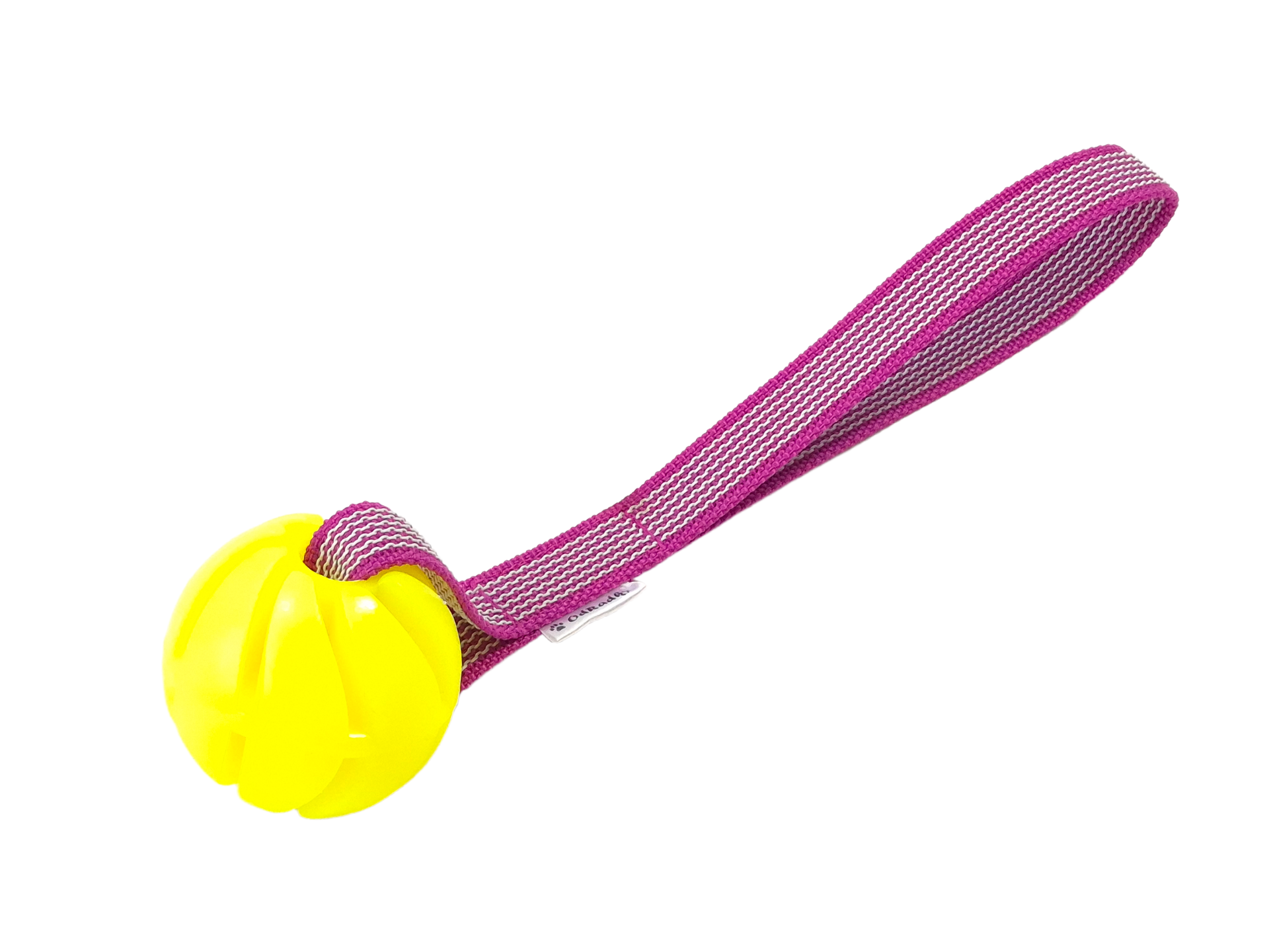 Vyrobeno ze spirálového míčku Sum-plast z tvrdé gumy s vanilkovou vůní a polypropylénového popruhu s vetkanou gumou.