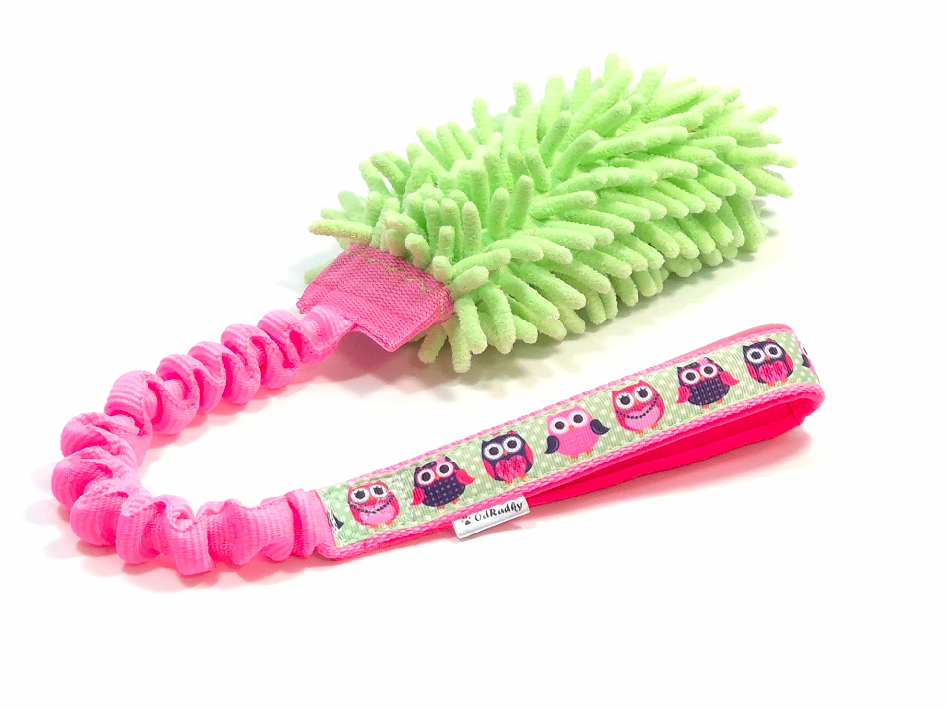 Mopové přetahovadlo patří mezi velmi oblíbené hračky, pro větší pevnost vede popruh v celé délce hračky. Délka mopové části 15cm, molitanová výplň, délka amortizéru 35 cm, po natažení 60 cm, ručka je zdobená stuhou a podšitá softshellem.