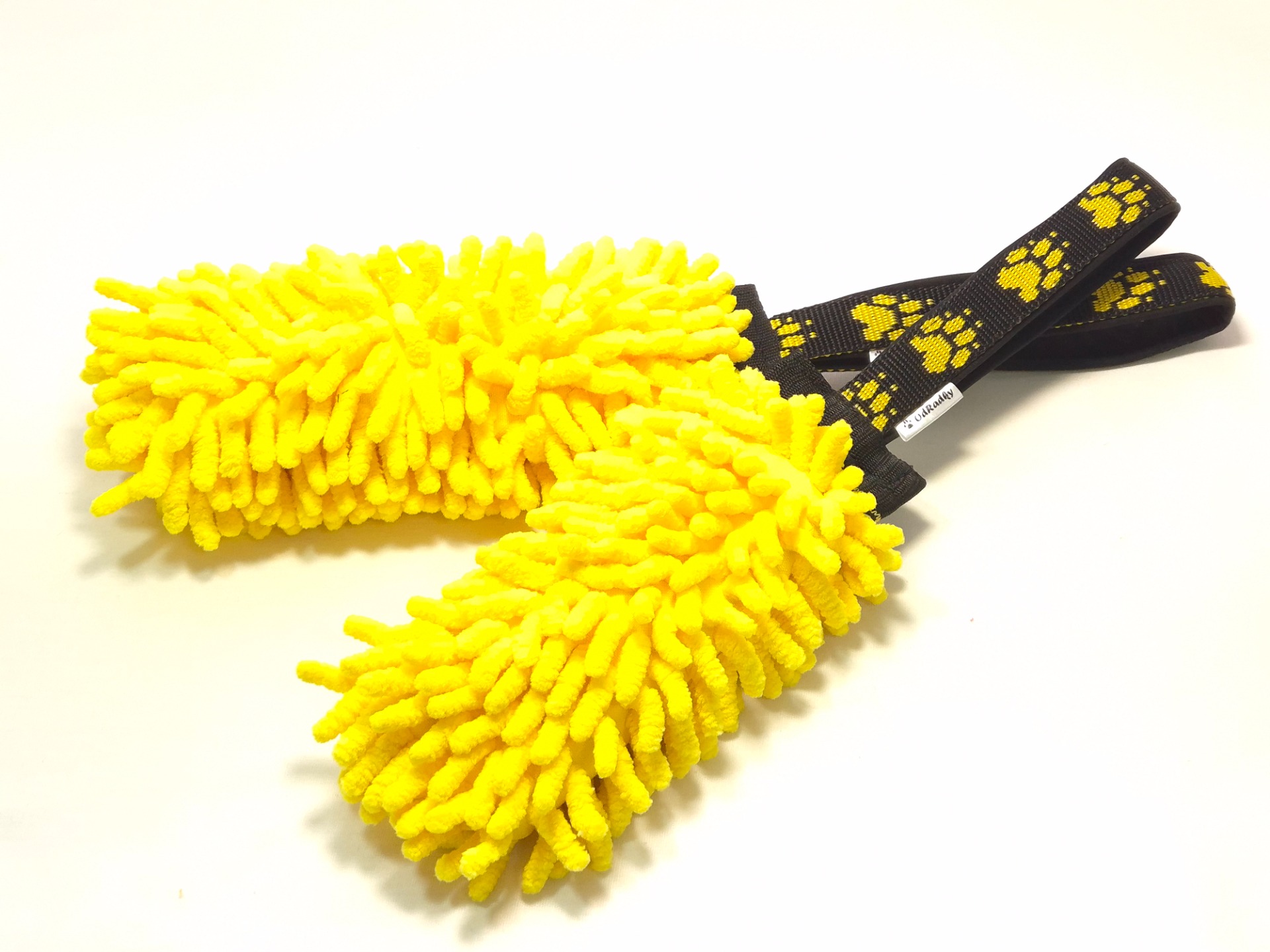 Délka mopové části malý 15cm/velký 20cm. V celé délce mopu, pro lepší pevnost vede popruh. Výplň je molitanová. Ručka je zdobená stuhou a podšitá softshellem, délka ručky 20cm.
