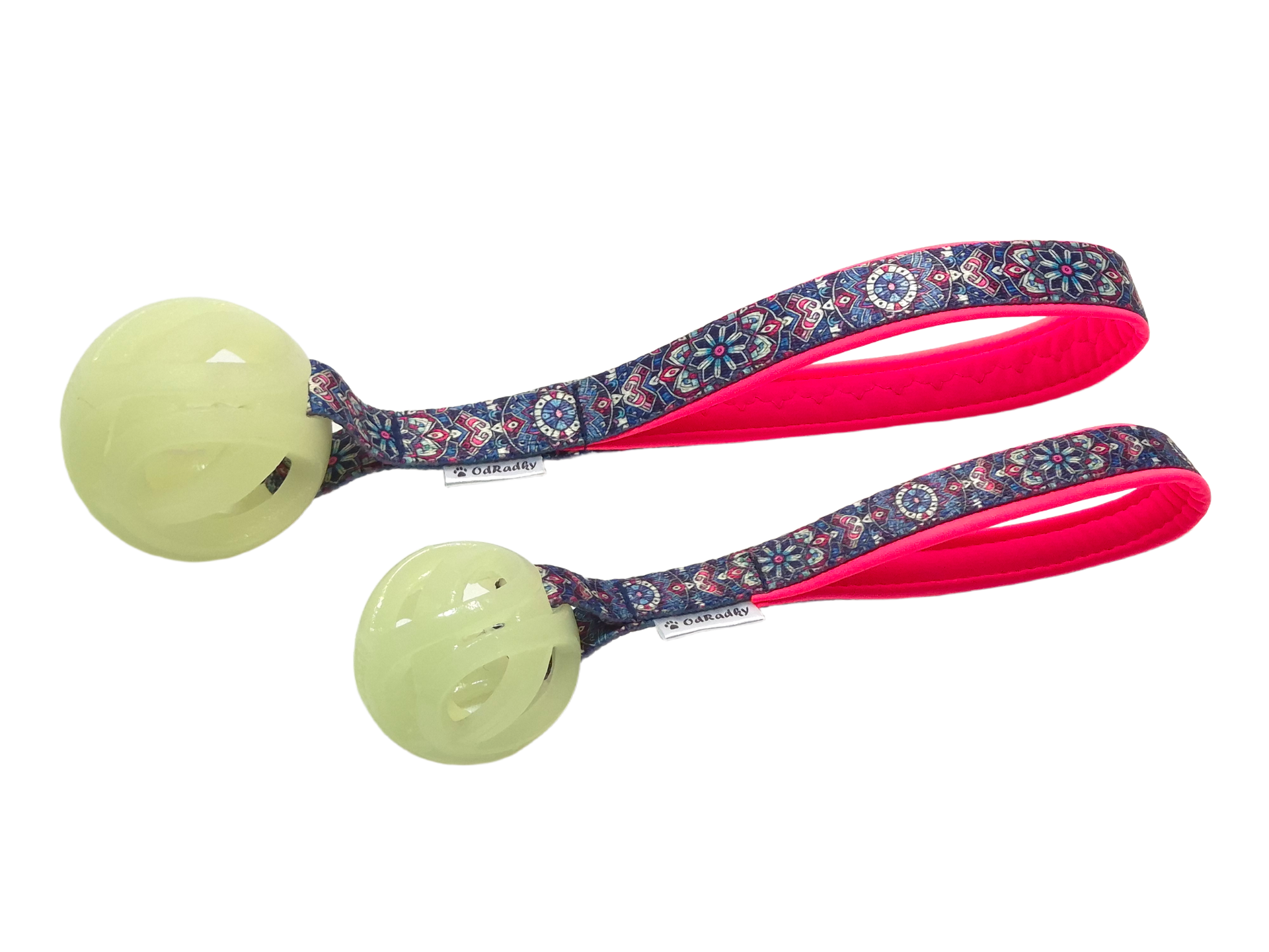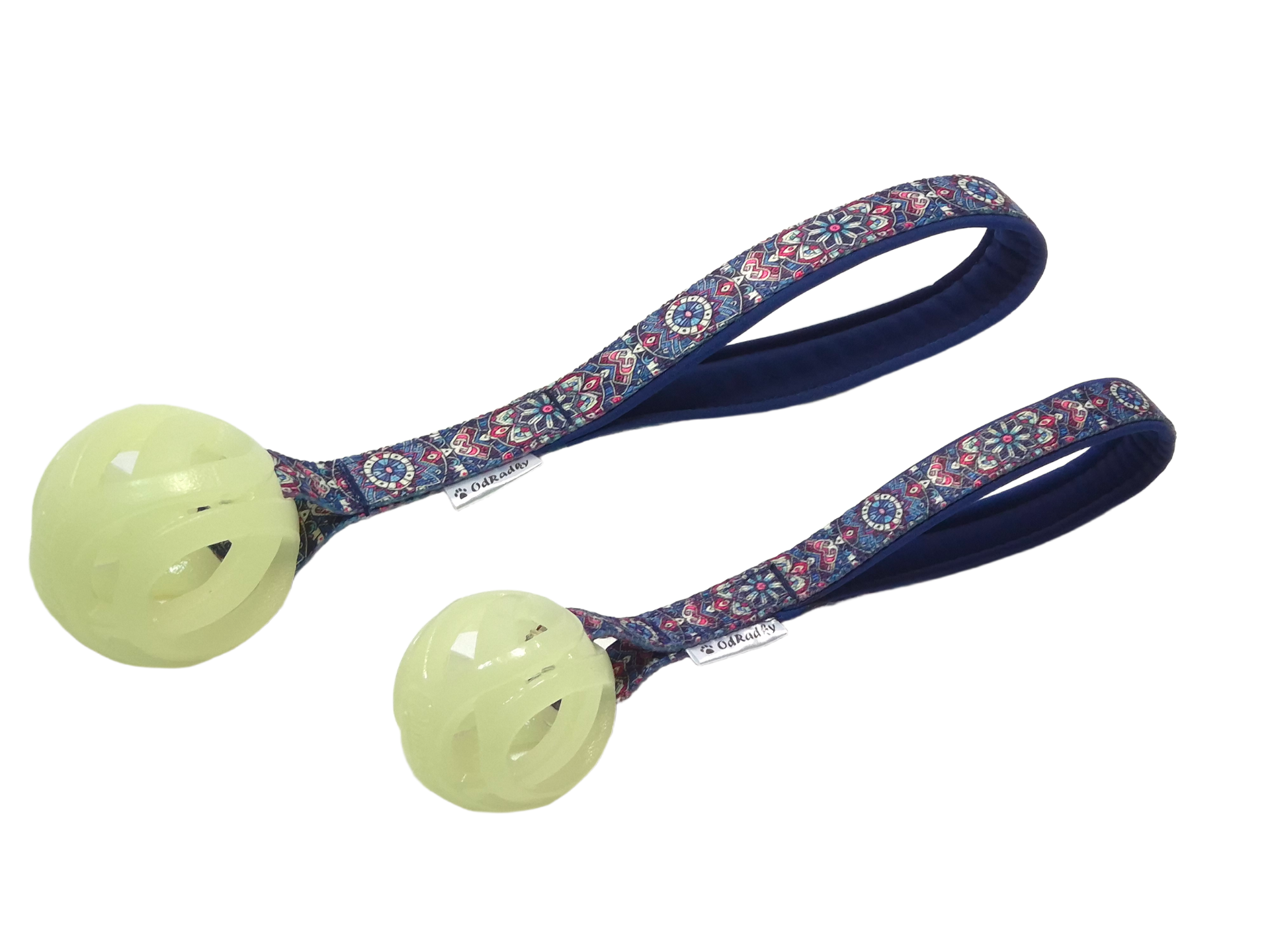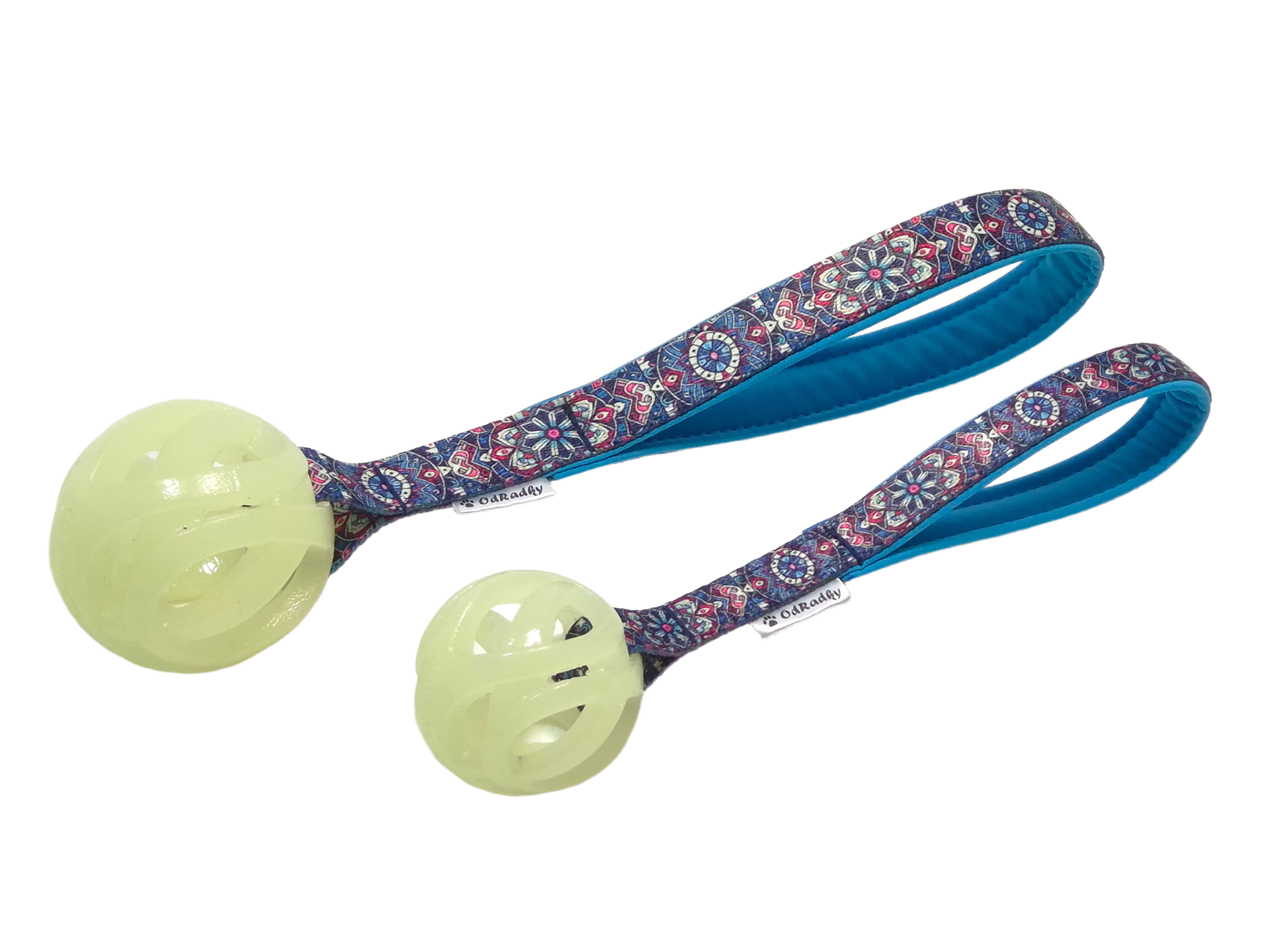 Míček medium (6,5cm) na popruhu 2cm, celková délka hračky 30cm.