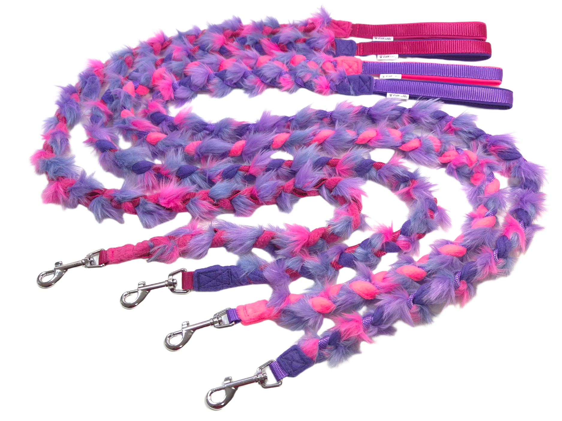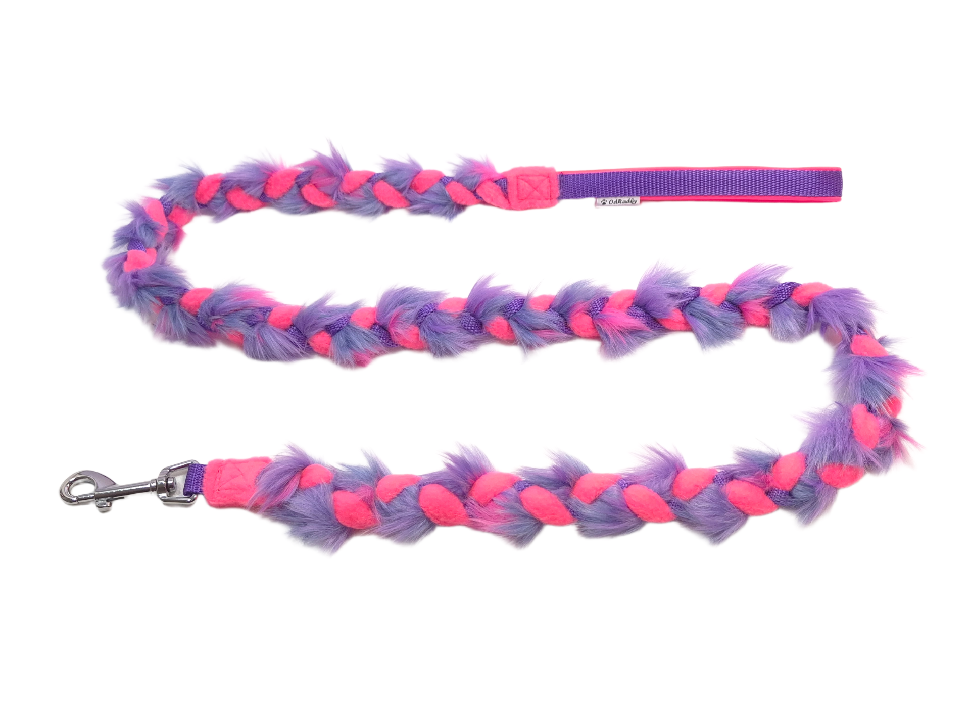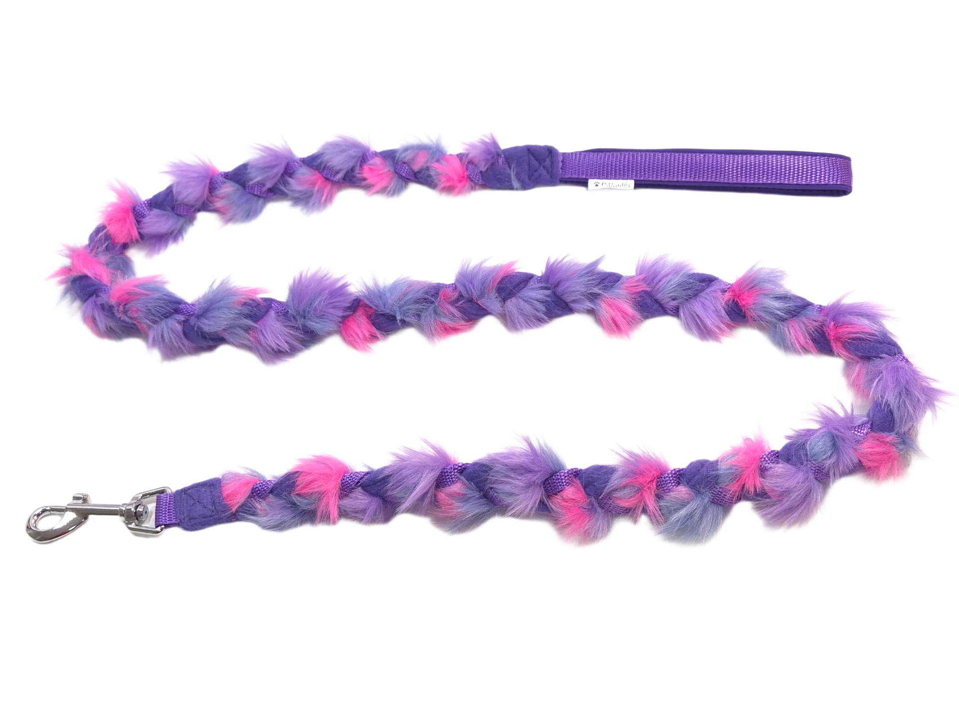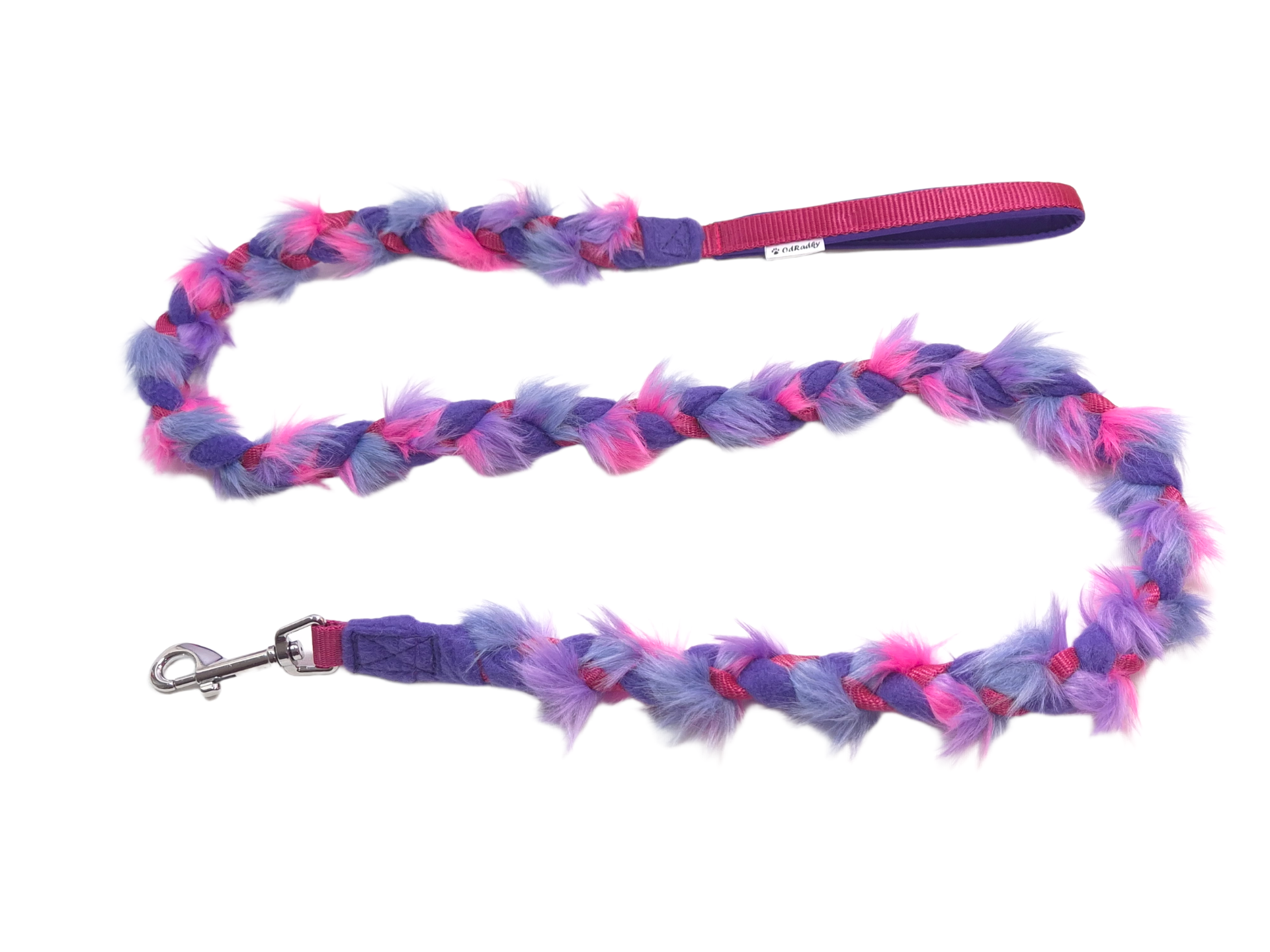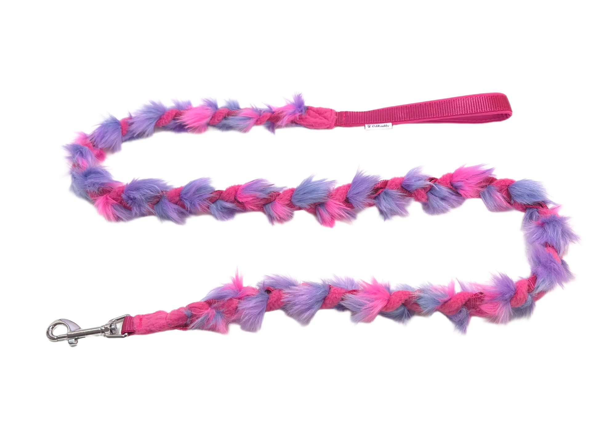 Vodíto vyrobené z popruhu zapleteného s umělou kožešinou a fleecem. Vhodné pro malá a střední plemena. Délka vodítka 140cm, karabina 62mm.