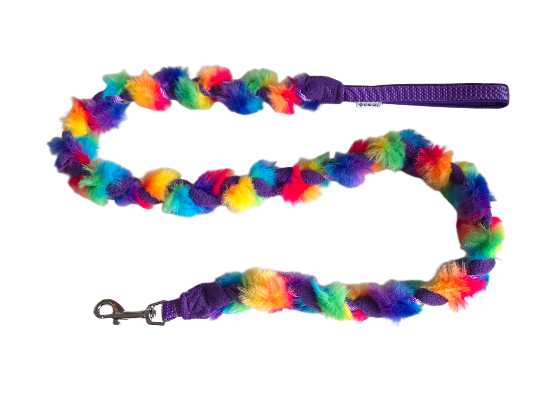 Vodíto vyrobené z popruhu zapleteného s umělou kožešinou a fleecem. Vhodné pro malá a střední plemena. Délka vodítka 140cm, karabina 62mm.
