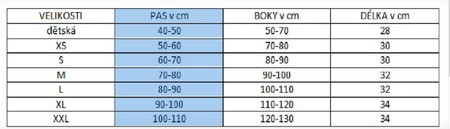 Kilt je zhotoven z šusťákoviny s pružným pasem na gumu, zapínání na plastovou sponu. Vhodný zejména v horkých dnech, je lehký a vzdušný, lze však používat celoročně, je pohodlný a praktický. Má dvě přední kapsy, jednu velkou zadní, a na levé straně poutko s kroužkem.